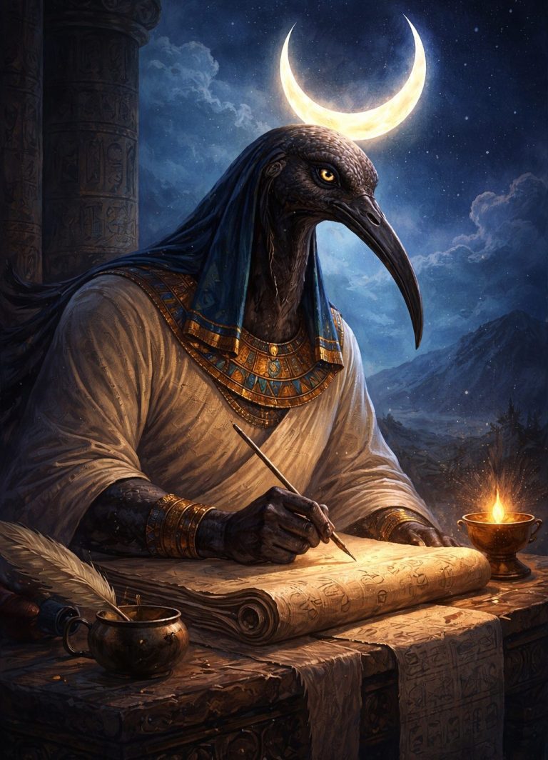 Thot, der ägyptische Gott der Weisheit, ist weniger eine Gestalt aus alten Mythen als ein zeitloses Prinzip: die innere Stimme, die uns an das erinnert, was wir längst wissen. Er erscheint oft als Ibis oder als Mensch mit Ibiskopf – ein Symbol für Klarheit, Achtsamkeit und den feinen Blick für das Wesentliche.