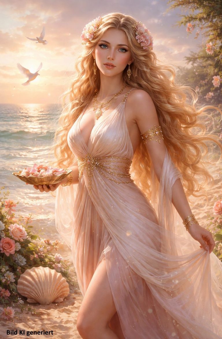 Aphrodite, die uralte Göttin der Liebe und Schönheit, entstieg einst dem schäumenden Meer und brachte mit sich die Kraft der Anziehung, der Sinnlichkeit und der Herzensverbindung. Ihr Wesen erinnert uns daran, dass wahre Schönheit aus dem Inneren strahlt und dass Liebe eine leise, aber mächtige Energie ist, die Räume, Herzen und Gedanken verwandeln kann.